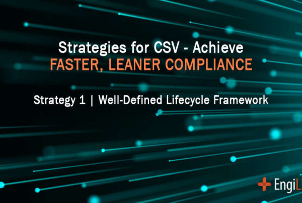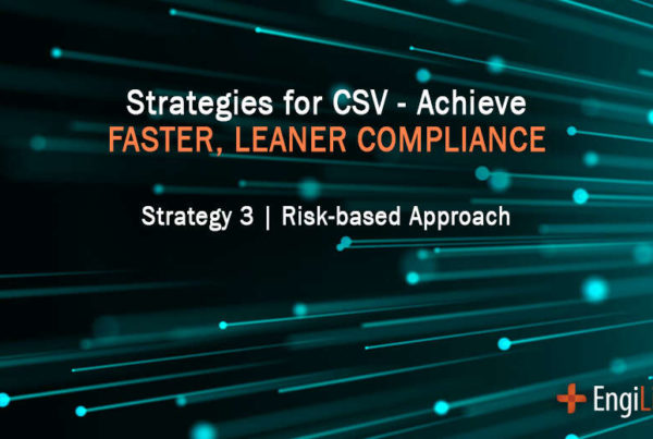 To learn more about the proven methods EngiLifeSciences employs to help your organization achieve faster, leaner compliance, read the other parts in our series – Strategies for CSV – Faster, Leaner Compliance.